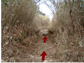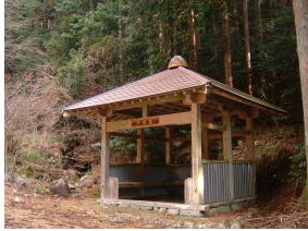 山頂東にある休憩所 この標識より20m程下ると天狗岩 |