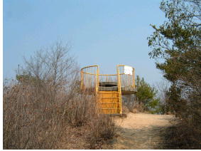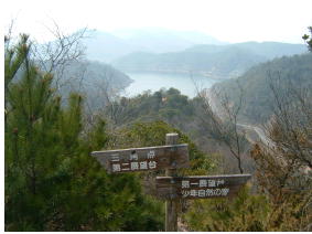 第1展望台へ戻る途中にある芝生広 場・東の山への分岐 |