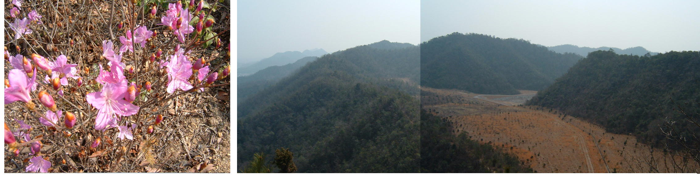つつじの花がもう咲いていた 尾根縦走路から見た藤ノ木山方面 |