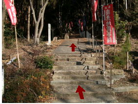 2008年2月21日(木)晴れ 開山堂P10:50→ 鹿除け扉10:51→ 尾根分岐11:10→ 峰相山山頂11:15→ 尾根分岐11:20→ 鹿除け扉11:34→ 開山堂P11:35 山の地図(PDF版) / 目次へ 峰相山(伊勢小学校コース)に戻る 近くまで来たので開山堂を少し覗いてみようと立ち寄った。峰相山鶏足寺古蹟由来の石文を読むと(解からない箇所 多いが)歴史を感じさせる寺跡のようだ。見学はすぐに終わってしまったので登山口を探してみた。特に案内板もな く鹿除けネット扉が入口のようだがわからない。その先はどうなっているのか見極めようと登っていった。