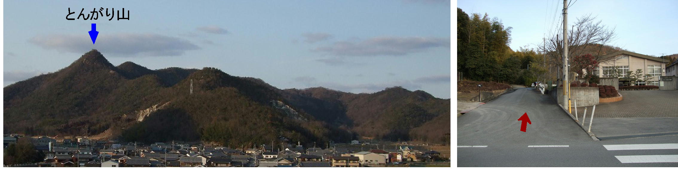山陽姫路西インターから見たとんがり山〜峰相山への山々 伊勢小学校北から登山口へ |