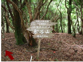 平坦な分岐に出た舩谷山らしい ○内は舩谷山の標示板 |