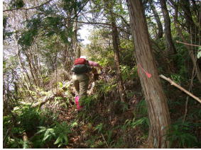 尾根道を進むが小枝が多くリックが 引っかかり行く手を阻む |