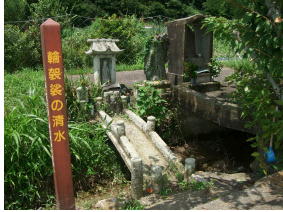 田んぼの中にあった輪袈裟の清水 今はただの川の流れの中にあった |