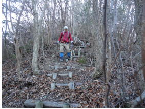 砦跡から妙見山方面に向う 砦跡へは急坂を登る |