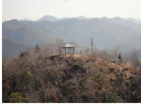 高畑展望場から見えた河内城跡 展望場とはいえ木々が繁る中だった |