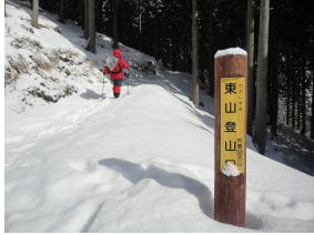 駐車場10:30→ 尾根コース登山口11:10→ ベンチ11:40→ 登山道分岐12:30→ 東山(展望台)12:40〜13:30→