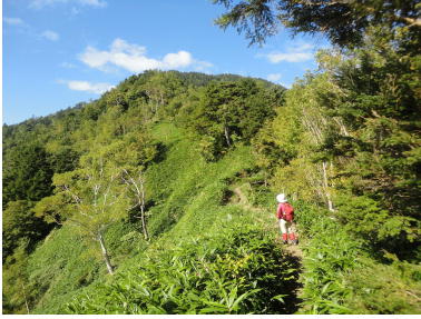 振り返ると昨日歩いた空木岳が、うっすらと見えた |