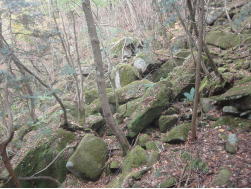 舗装道を左に進み岩塊流・くじら岩を 見て、その下から下山することにした |