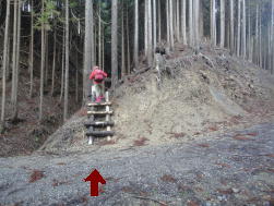 地蔵さんが鎮座する大乢に着いた、直進は杉山方面、下山するので右に進む |