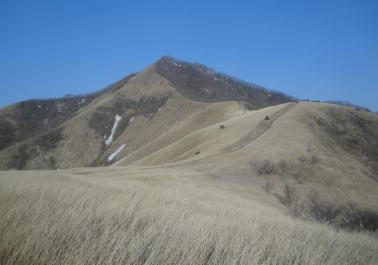 緑の笹は少なく枯れた笹で白く輝いていた |