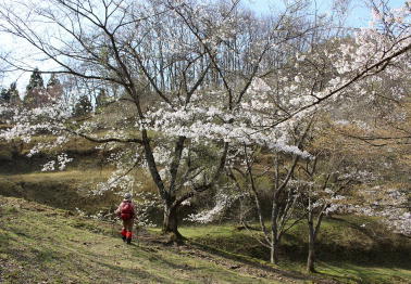 復路コースを花見をしながら下る |