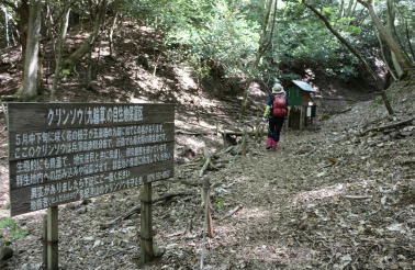 道路の案内板より登山道へ