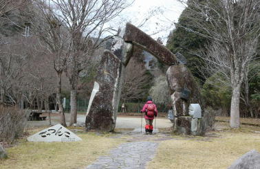 シダの尾根を少し進むと眼下にきんちゃく岩(たまご岩)が見えた、すごい迫力だ! |