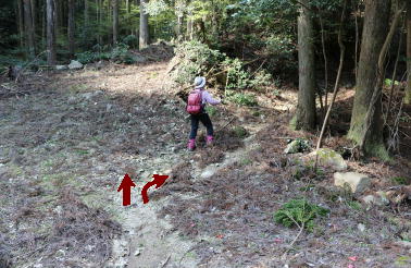 十三回り(峠)に出て戻る方向で尾根道へ |