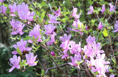町堺尾根に出るとアカヤシオが咲いていた(3本程確認、他2本は散り際) |