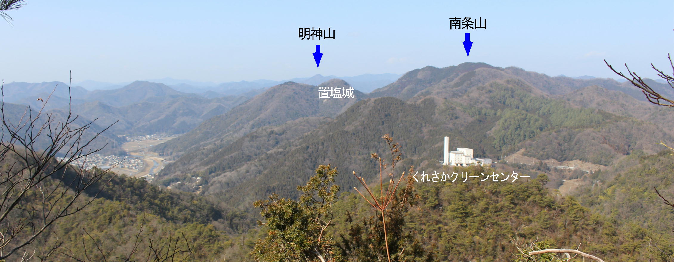 山頂から少し先で樹木の間から展望が得られた |