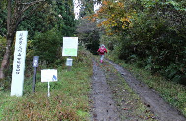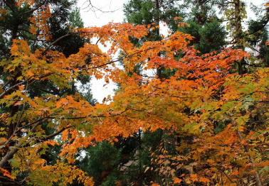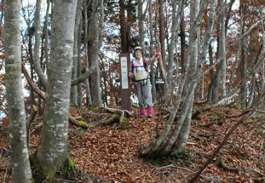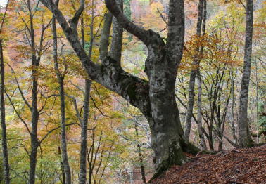 見上げるとブナの鮮やかな黄色の紅葉 |