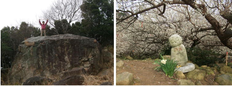 綾部山山頂の登り岩にて 綾部山梅林のお地蔵さん