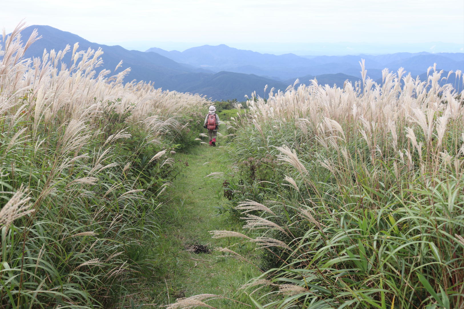下山は周回コースでススキの原を下る