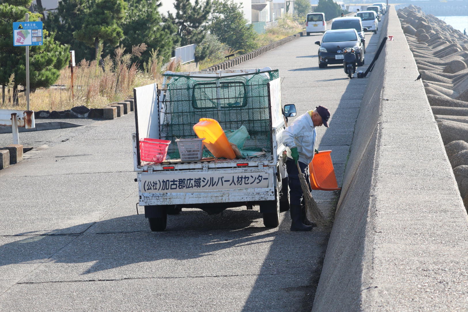 います。8〜10月は毎週、その他は月1回清掃とのこと。他の漁港では立入禁止の所もありますがここは締め出し