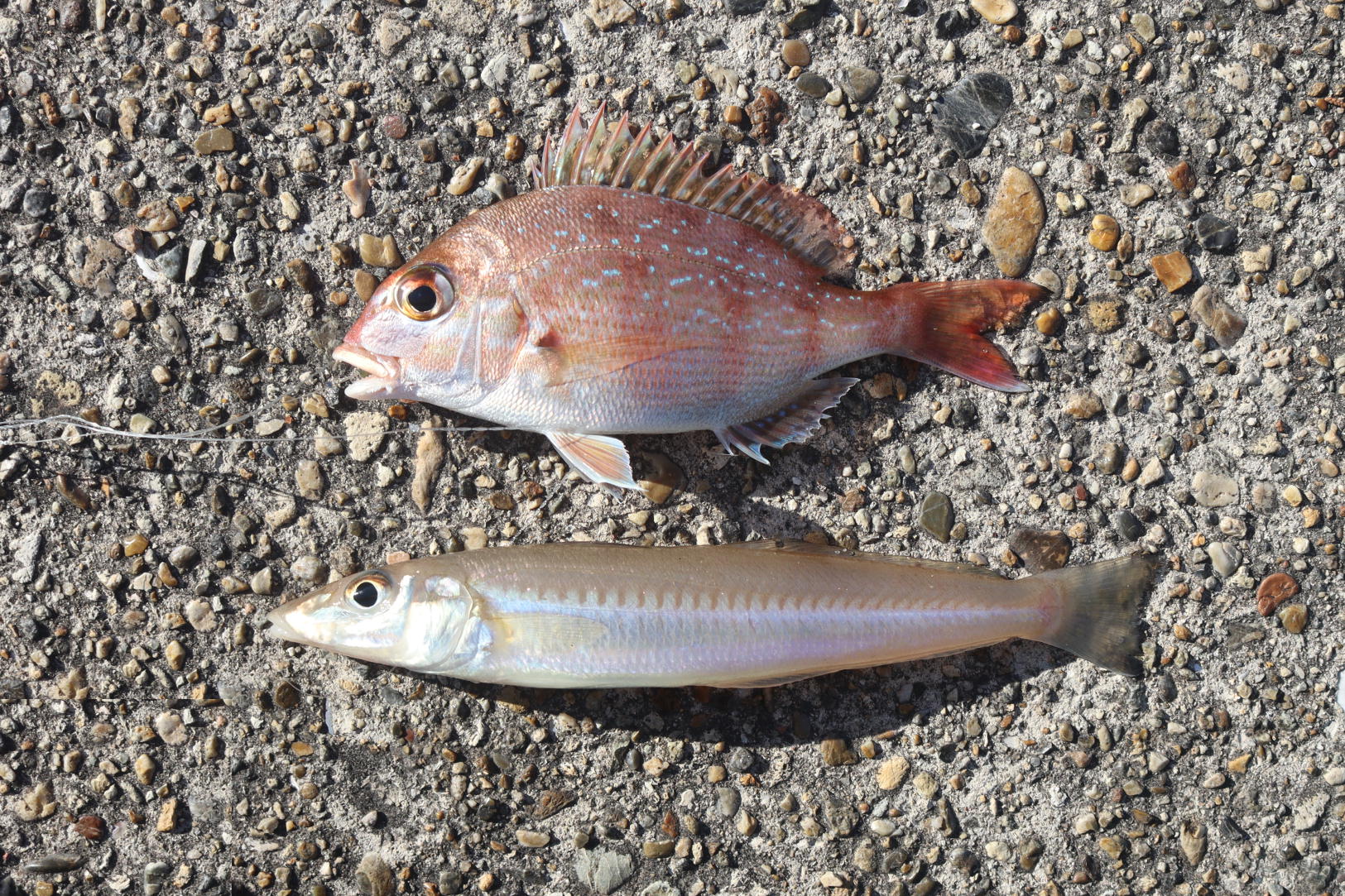 向、他の釣人も少なめです。仕掛けをセットし第1投目、すぐにアタリがありチャリコとキスがダブルで釣れました。