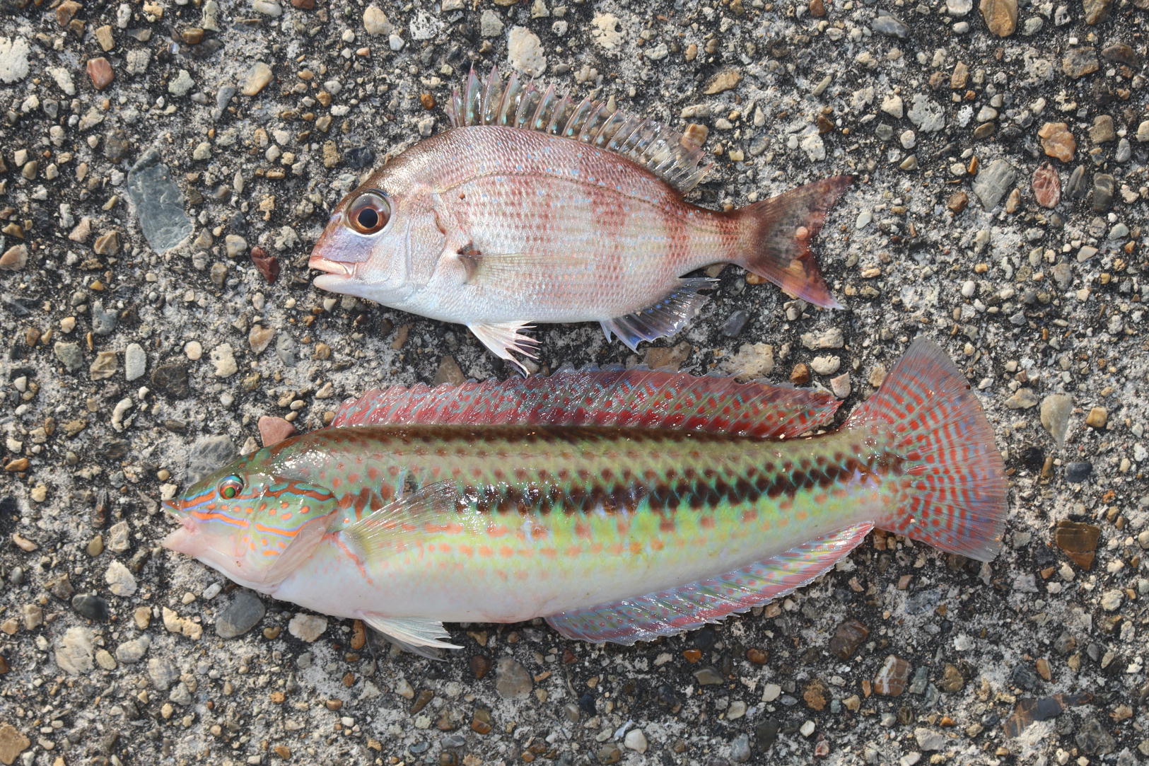 イントで強いアタリはコブダイ若魚とイソベラでした。辛抱強く投げ続けると小アタリがあり追い食いを待っている