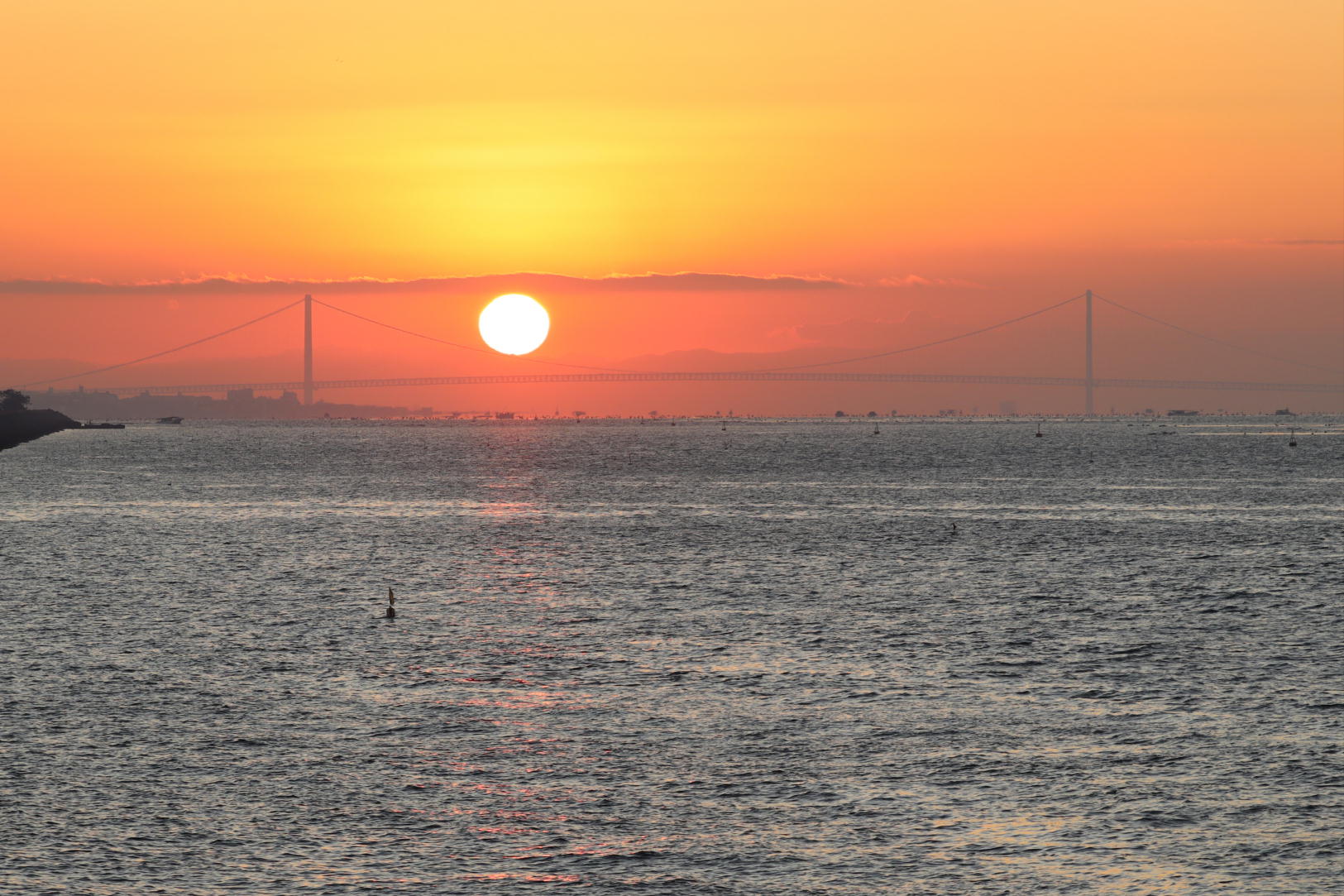 明石海峡大橋に昇る朝日はいつ見ても綺麗です