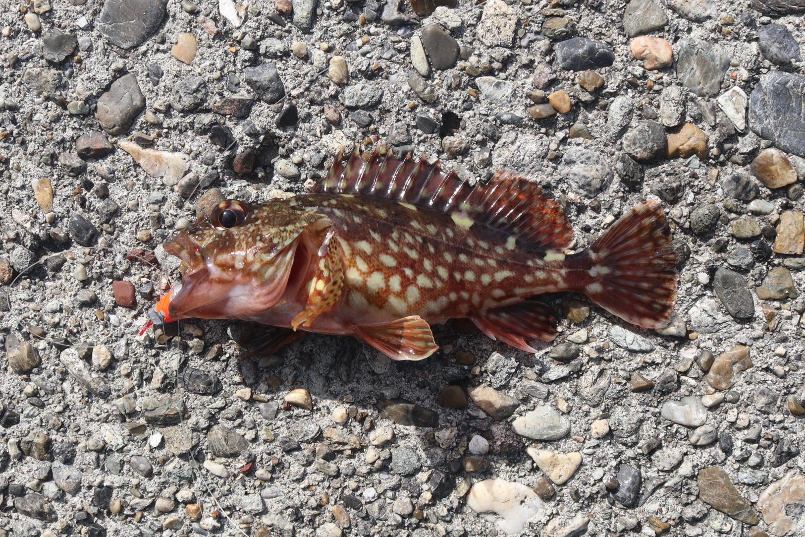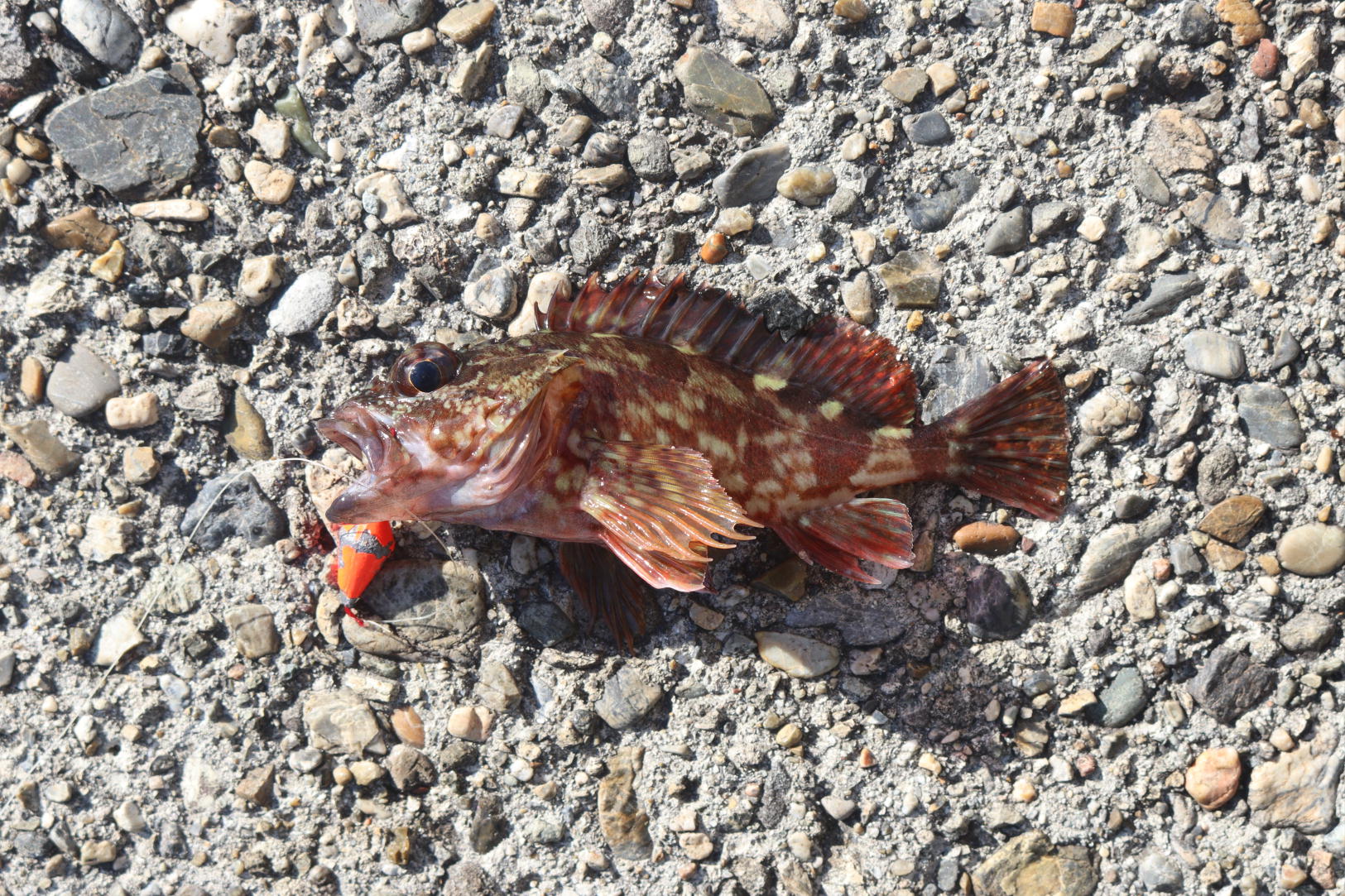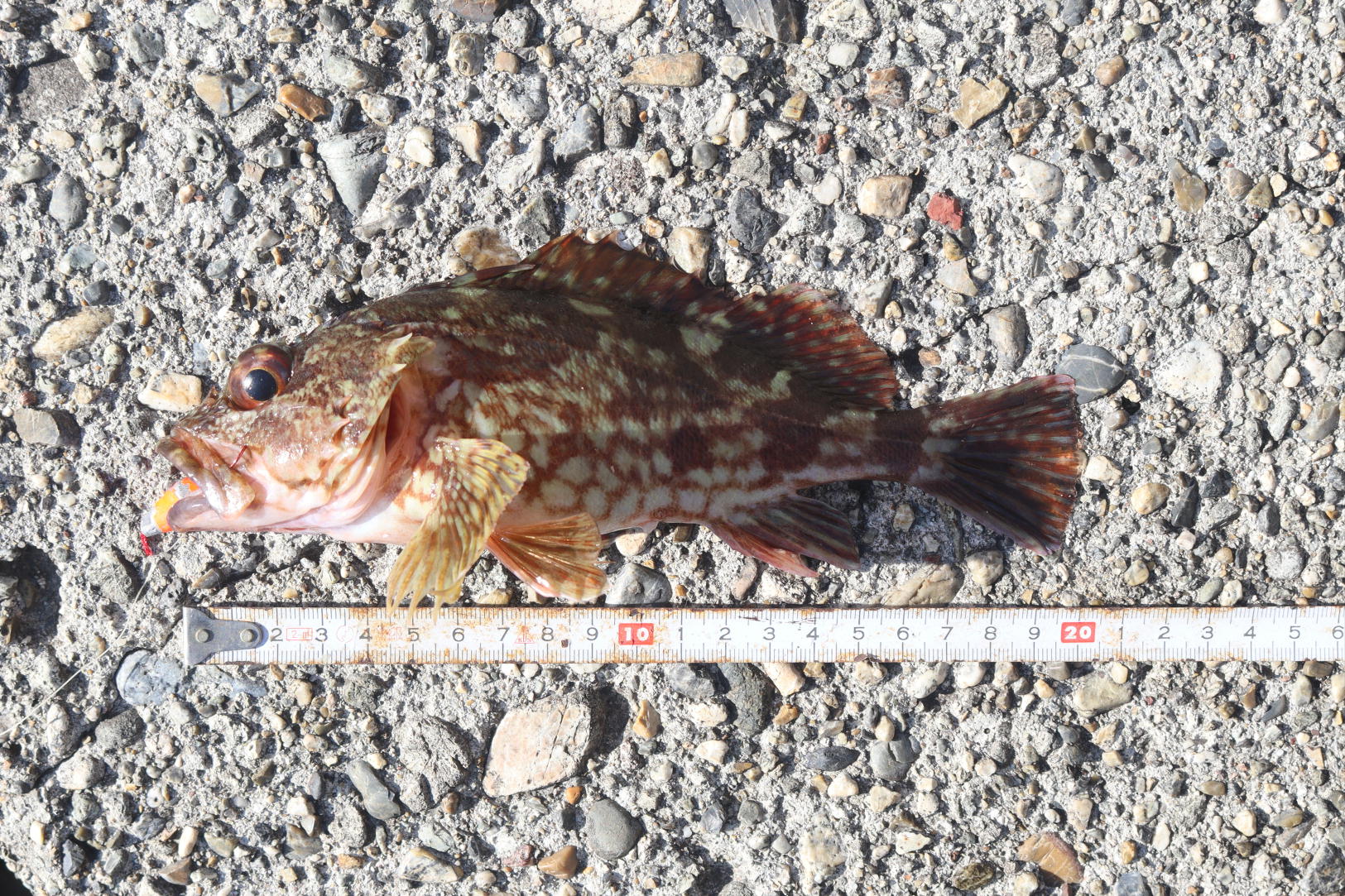 .0pのタケノコメバルでした。写真に撮って同じようなポイントを探りますが根がかり連発、寒気のせいかお昼前は