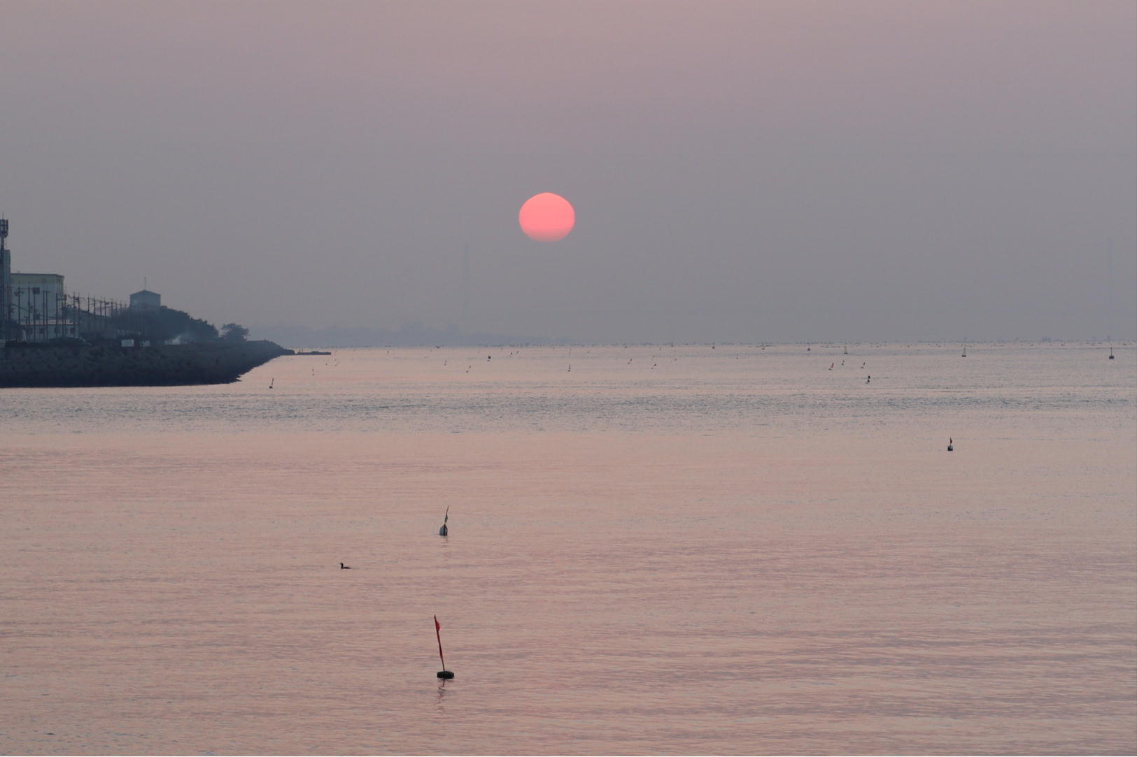 季節はずれの黄砂の影響か朝日がぼんやりしています