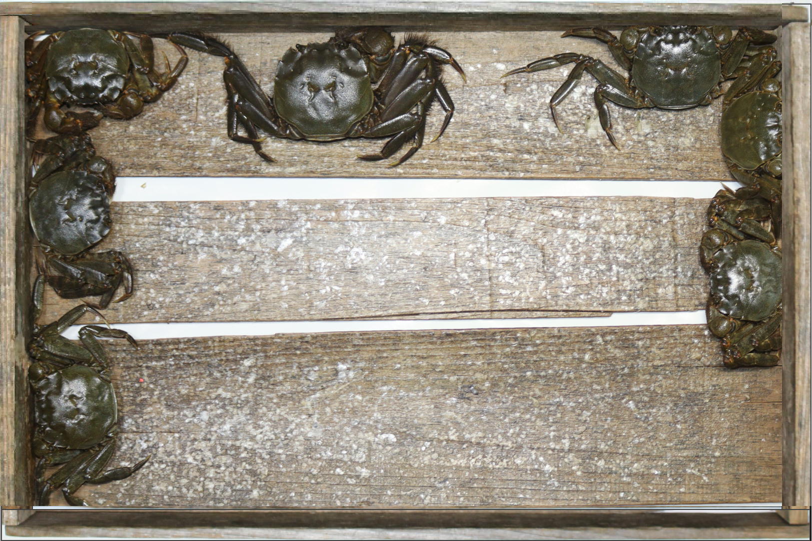 いつものトロ箱に入れると四方の隅に寄ってしまいました