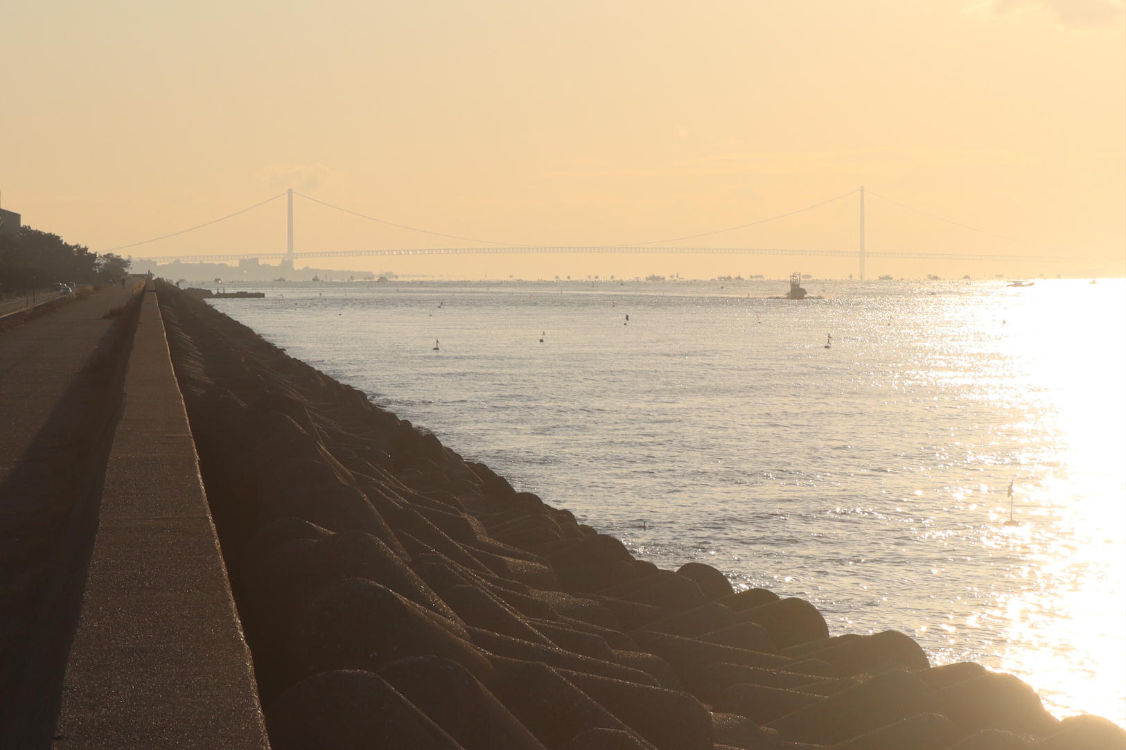 明石海峡大橋方面は眩しくてぼんやり