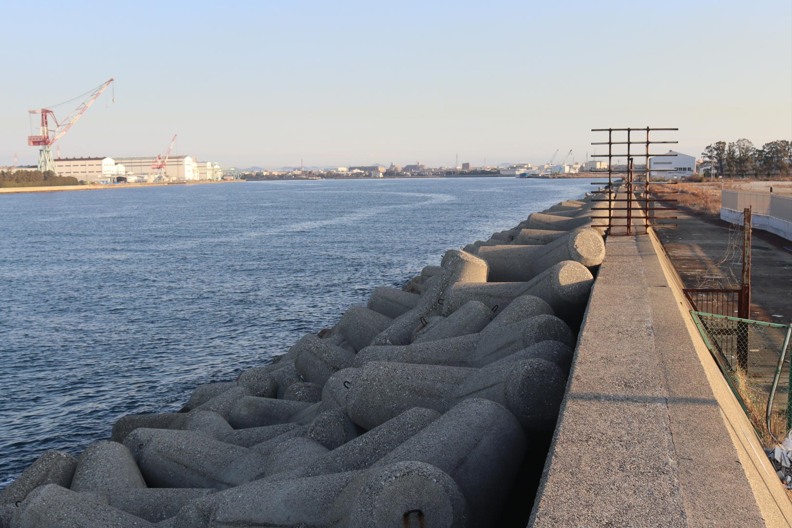 赤灯台で釣りをしている人はいないようです。北風なので護岸道下のテトラは風も波もなく穴釣りは支障ありません