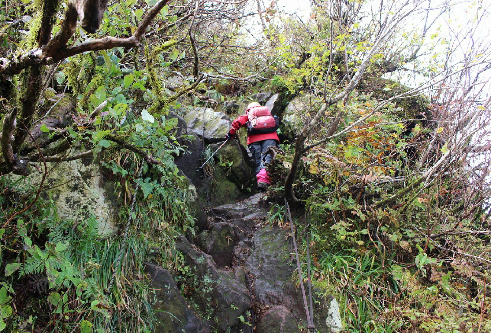 晴れているうちに山頂に着きたいけど急な岩場に阻まれる |