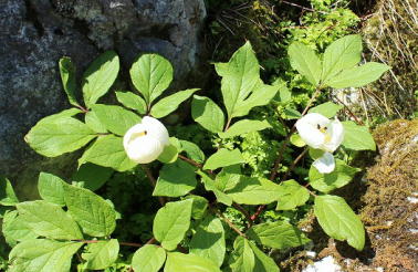 岩場から下を見るとヤマシャクの白玉がポコポコ見えた |
