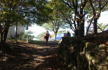 再度、ロープウェイの見える岩尾根道に出ると山頂駅が近くに見えた |