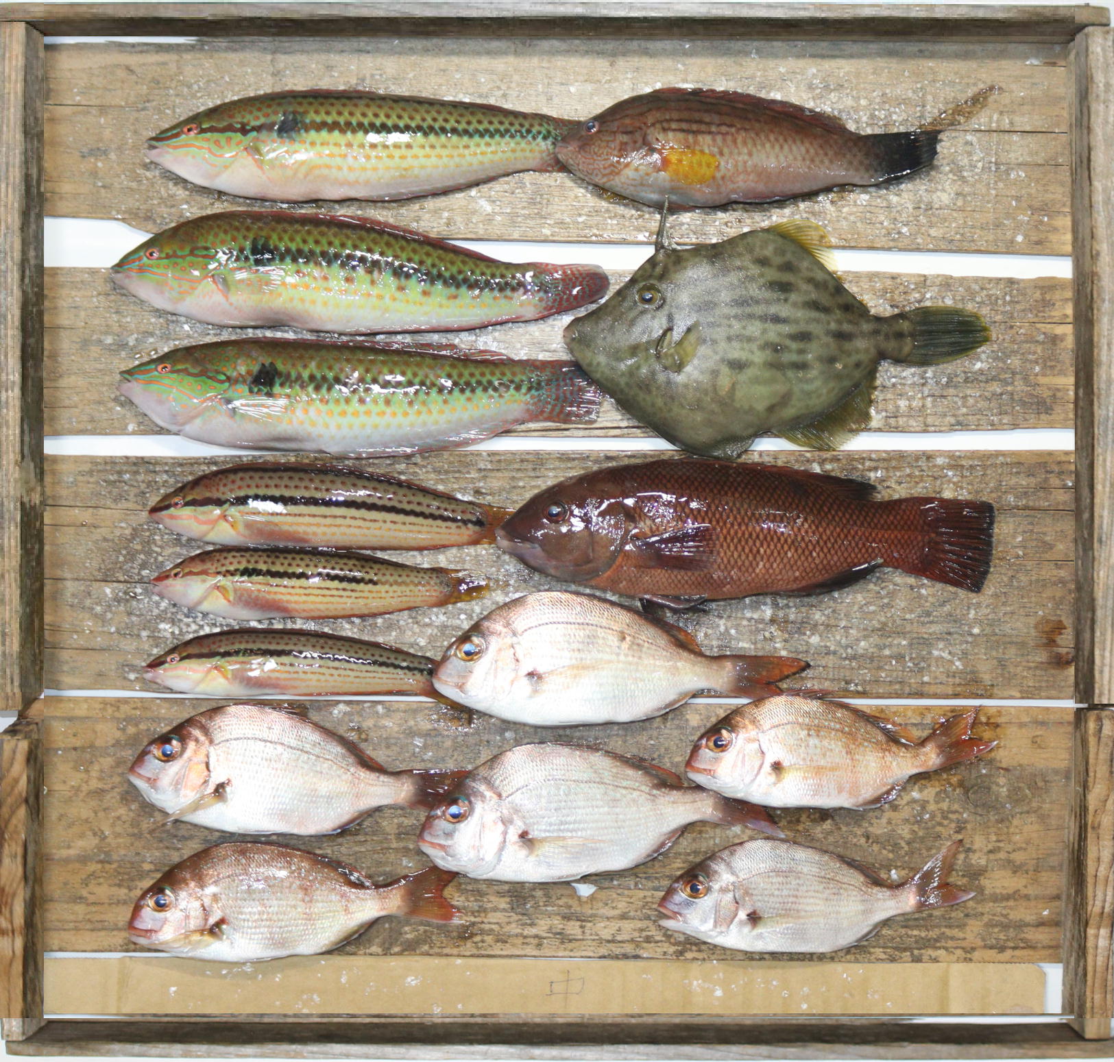 青ベラ=3匹(21.0p〜22.5p) 赤ベラ=3匹(14.5p〜17.0p) イソベラ=1匹(17.5p) カワハギ=1匹(19.5p) コブダイ=1匹(22.5p) チャリコ=6匹(14.0p〜17.0p) * カレイは釣れず夏と秋の魚ばかり * チャリコは混布締め用に少し持ち帰る