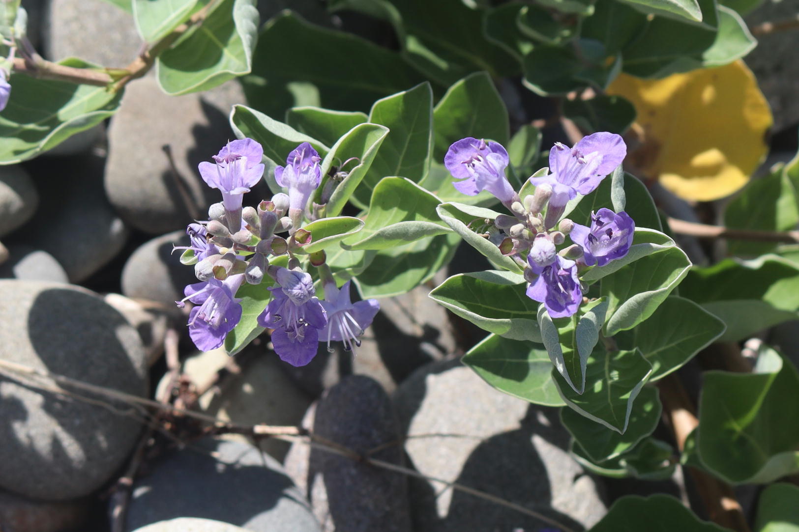 砂浜にはまだ夏のハマゴウの花が咲いていました