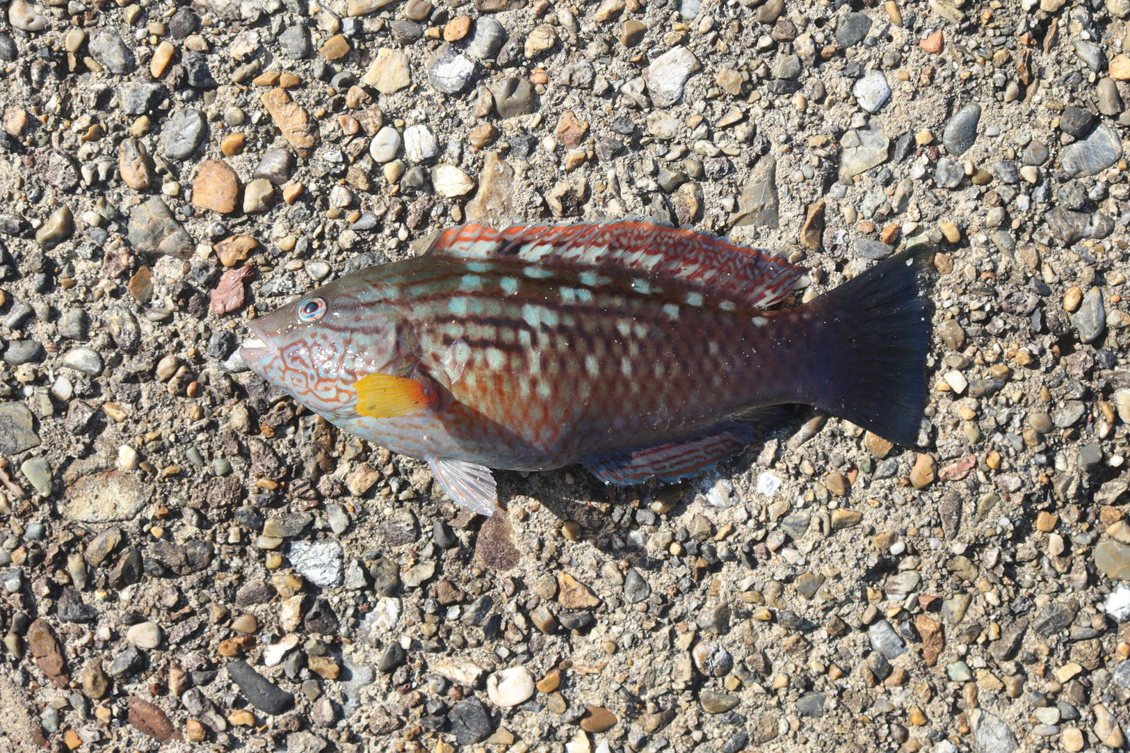 イントで強いアタリはコブダイ若魚とイソベラでした。辛抱強く投げ続けると小アタリがあり追い食いを待っている