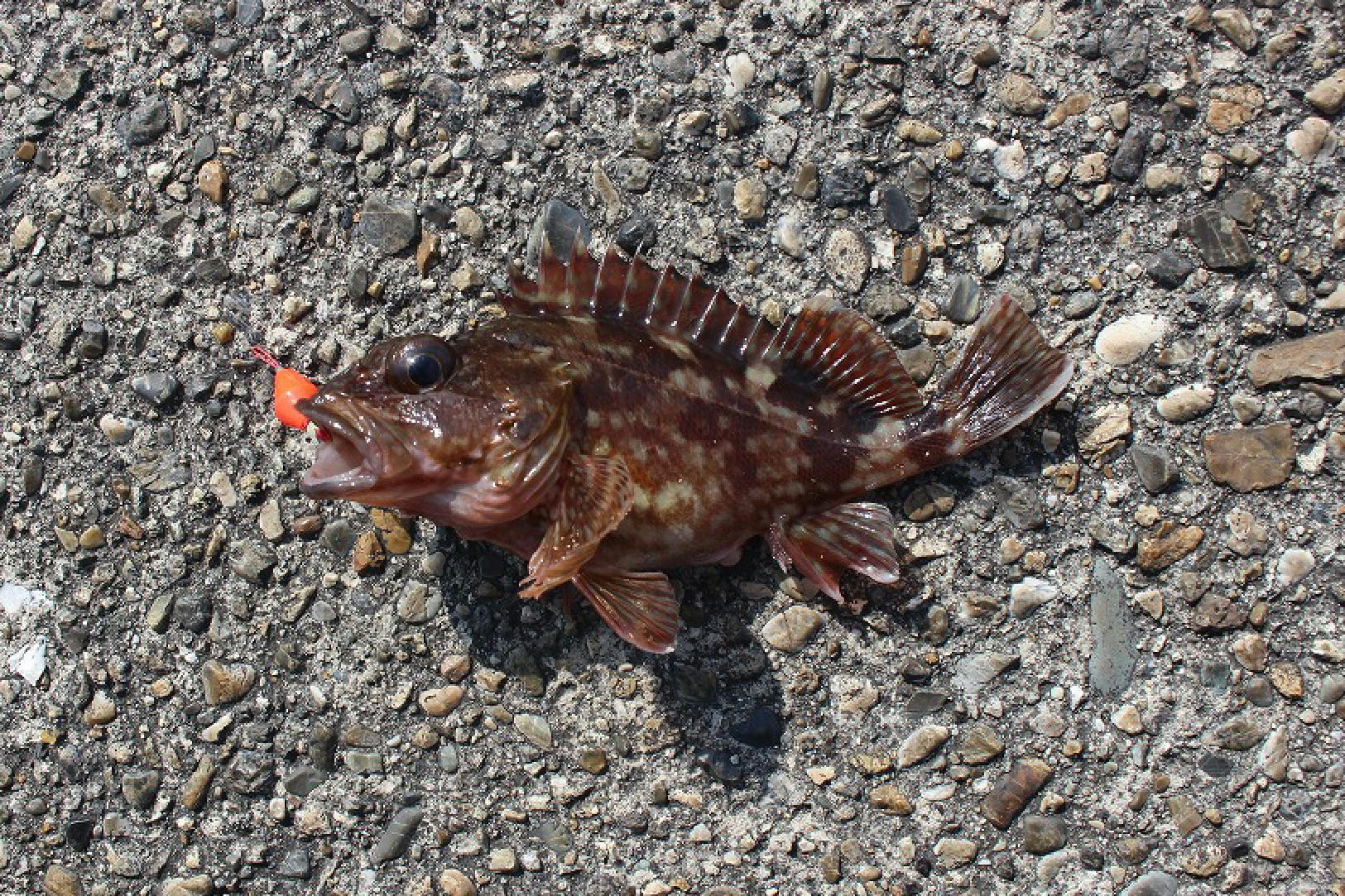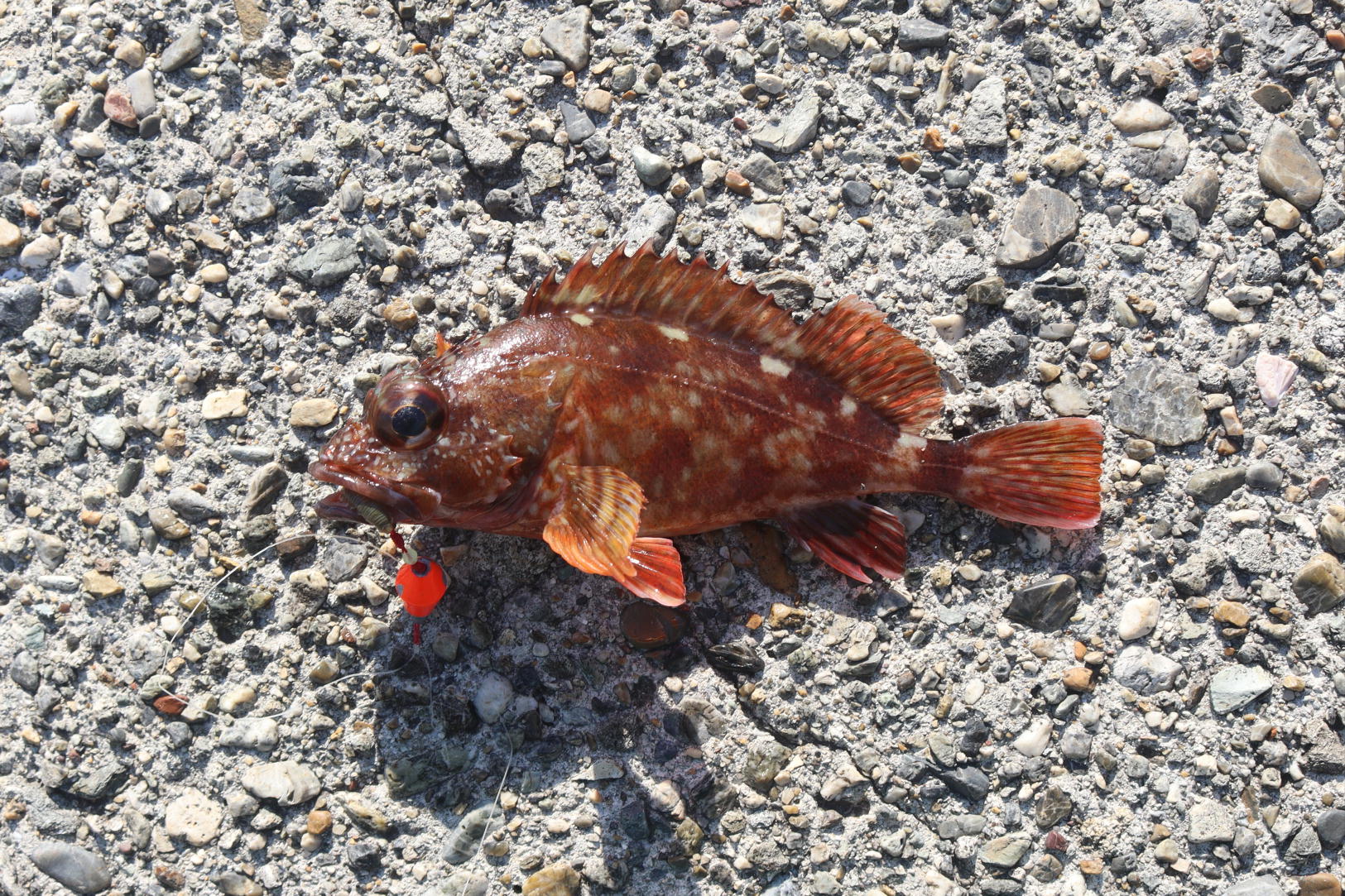 .0pのタケノコメバルでした。写真に撮って同じようなポイントを探りますが根がかり連発、寒気のせいかお昼前は