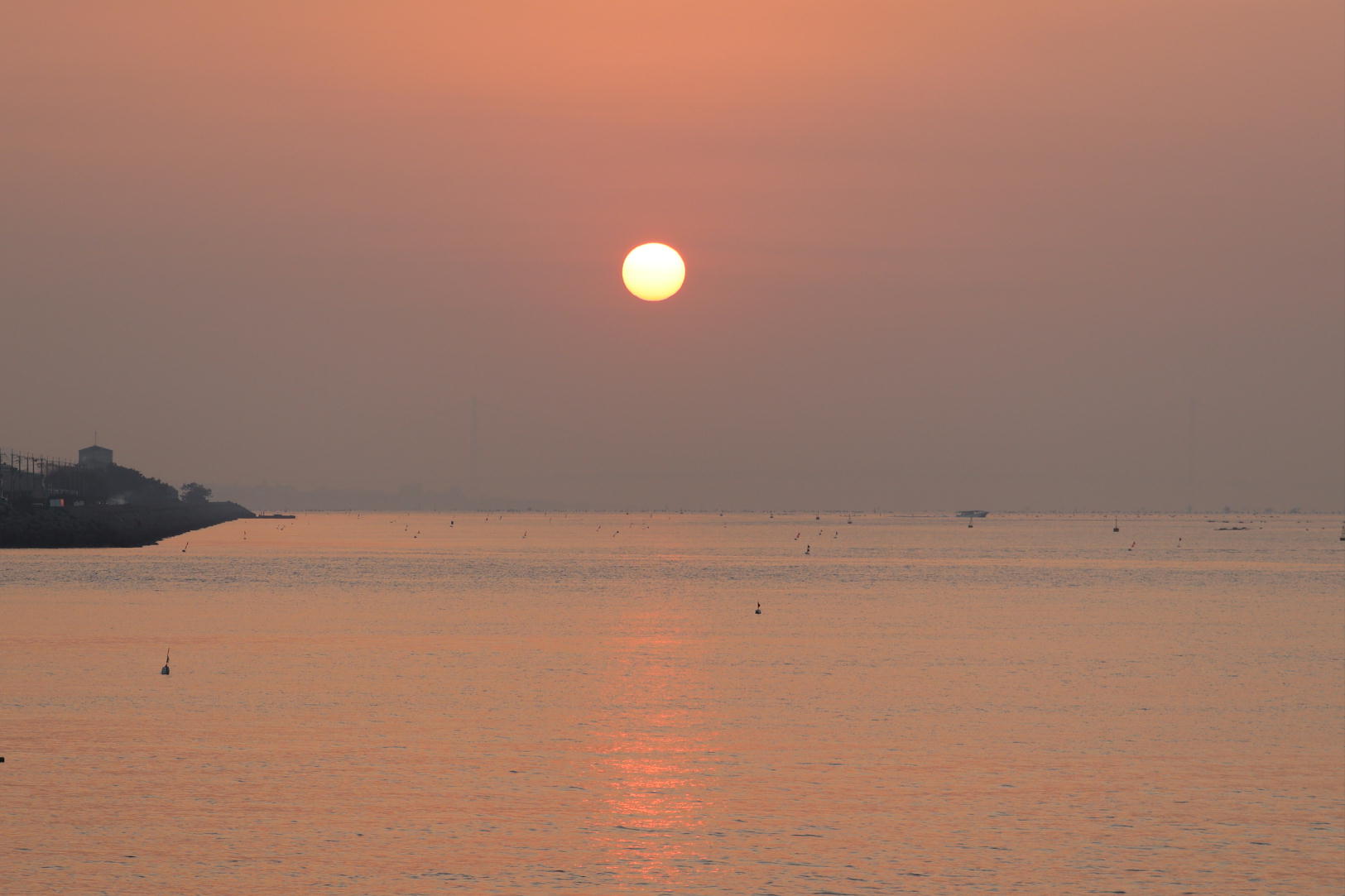 季節はずれの黄砂の影響か朝日がぼんやりしています
