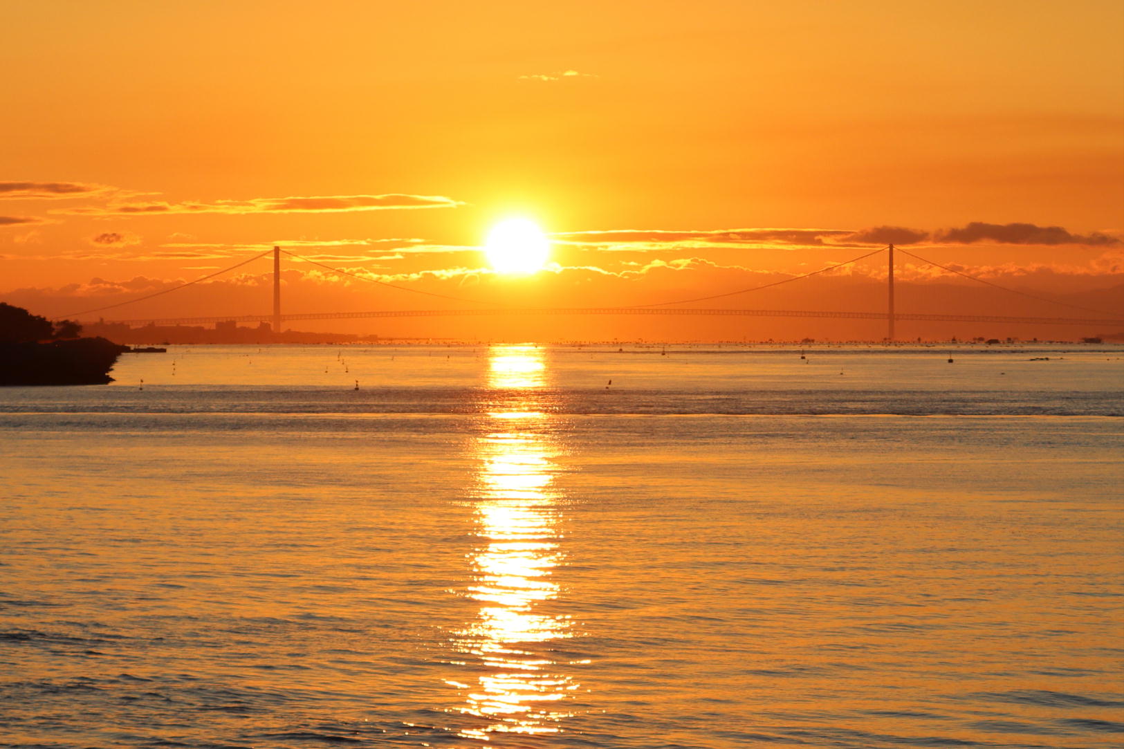 明石海峡大橋に昇る朝日はいつ見ても綺麗です