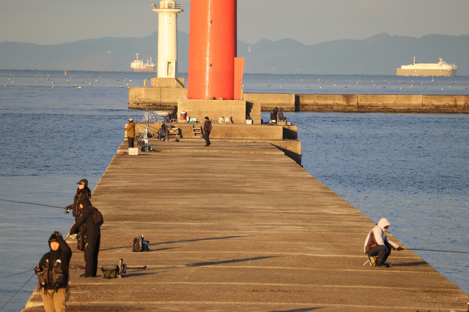 を撮り車中で朝食。まだ早いので少し赤灯台の様子を見てきましたがこの時期の釣人は少ないようです。陽が当たり