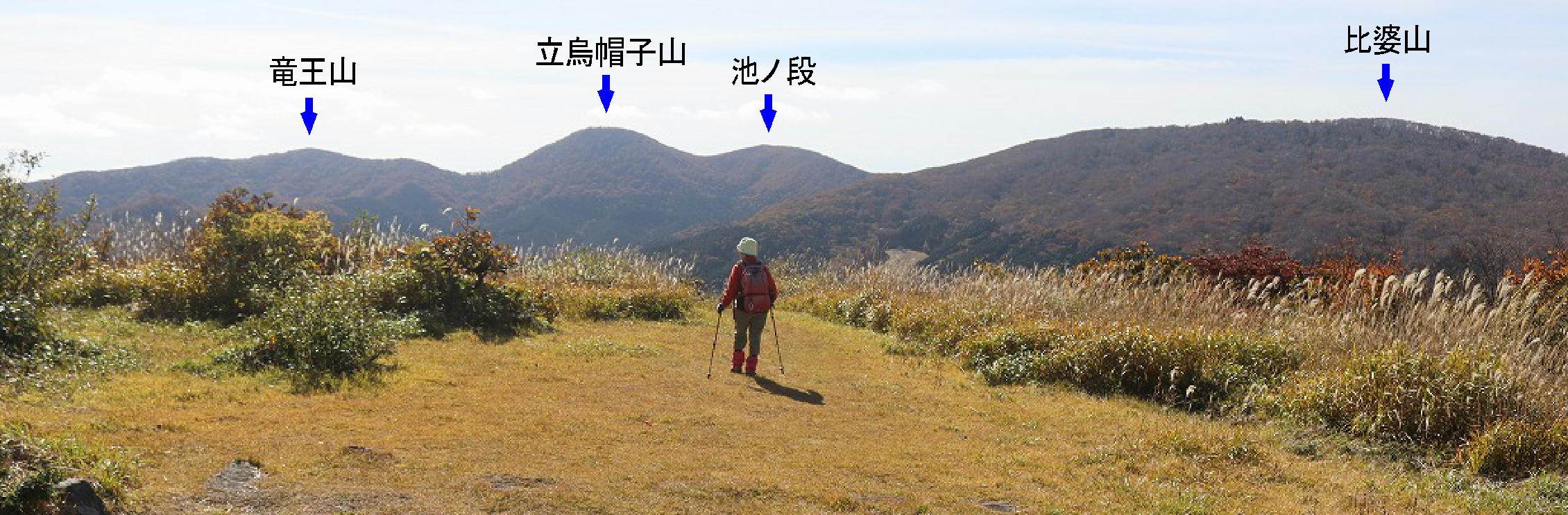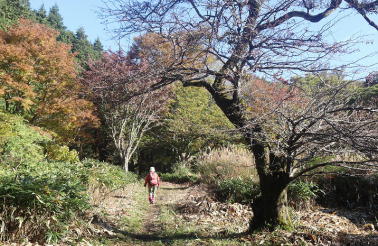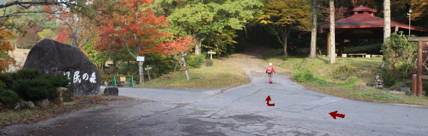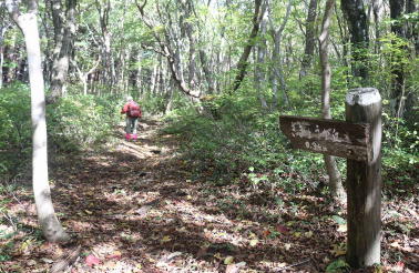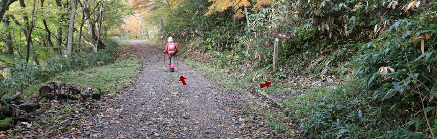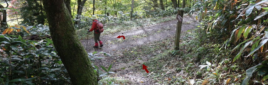 遊歩道は直進して出雲峠経由で毛無山へ、右も毛無山 |