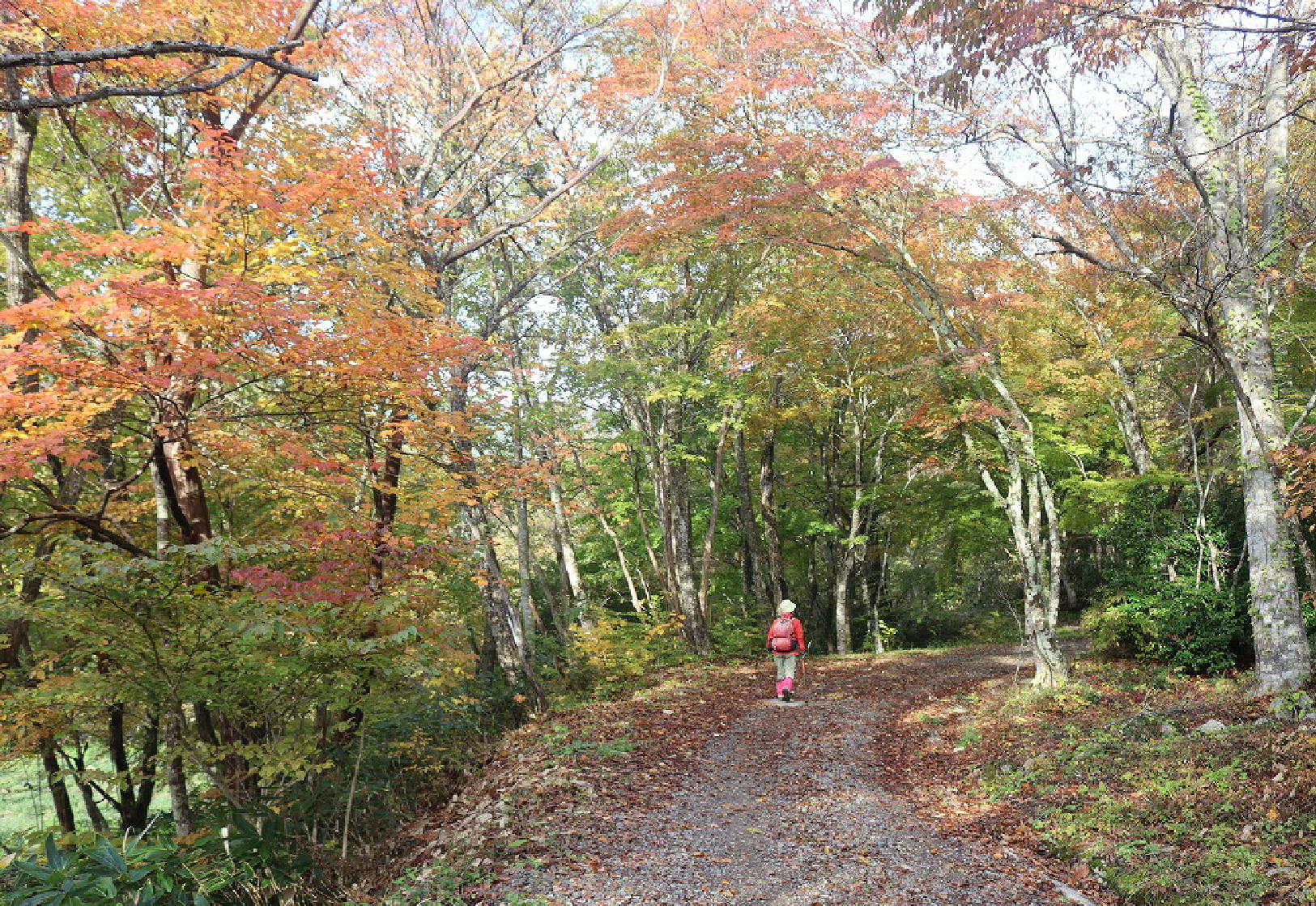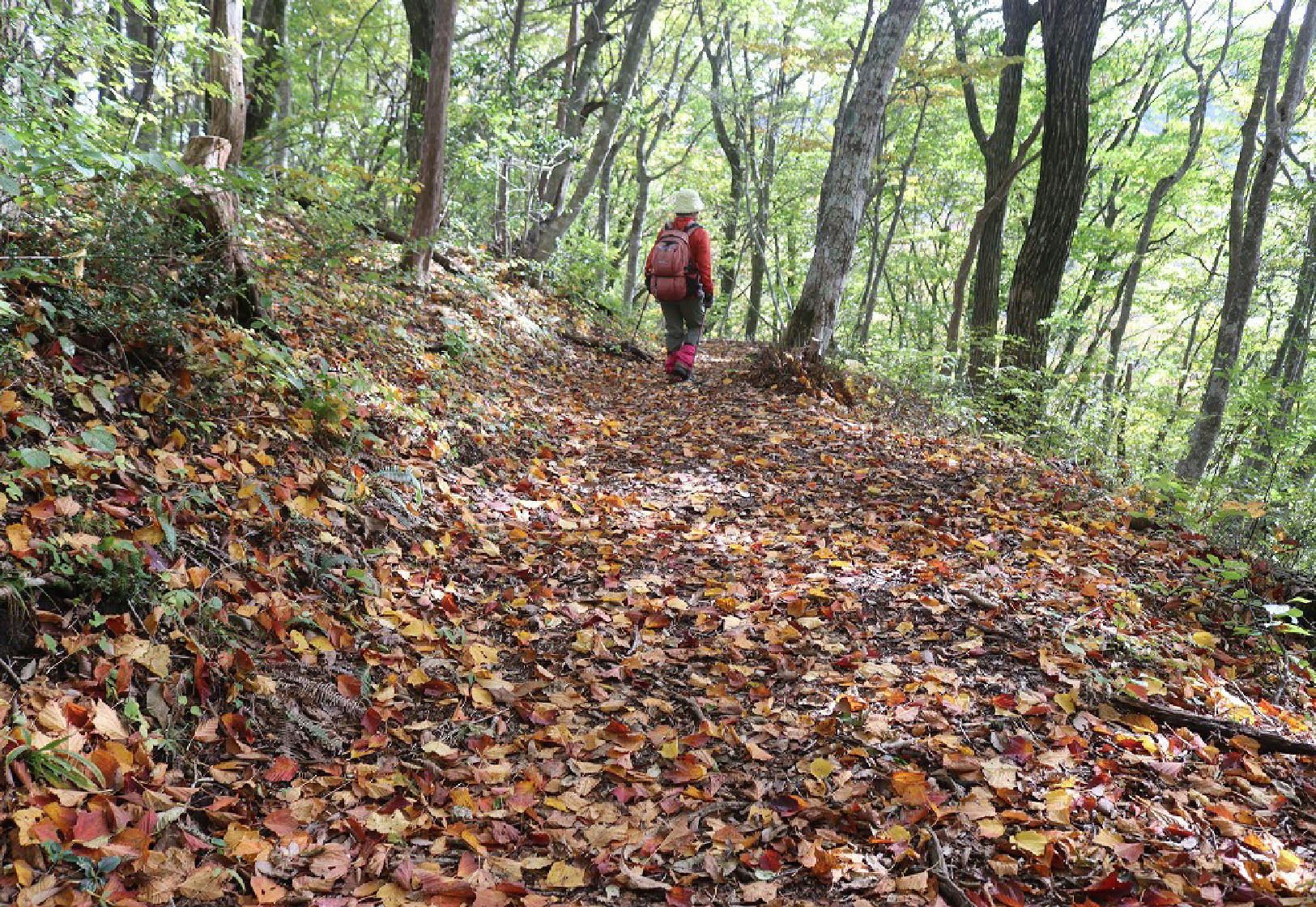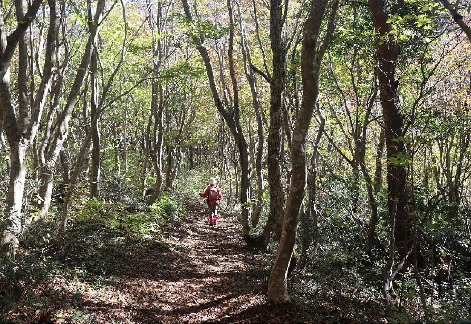 つづら折れ道を下り続けると往路の遊歩道に出た |