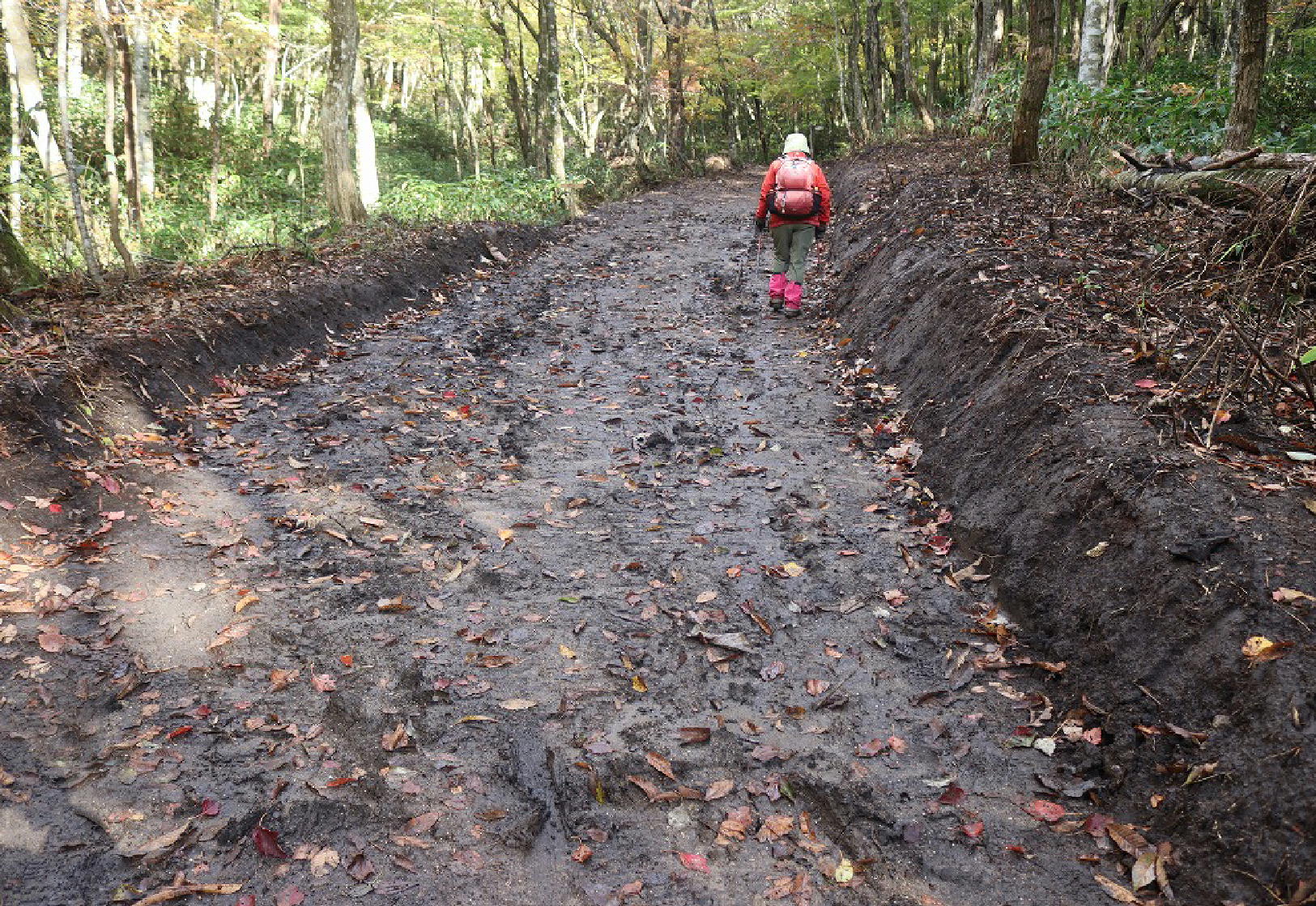 遊歩道は整備され風情がなく前日来の雨でドロベチャにぬかるんでいた |