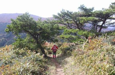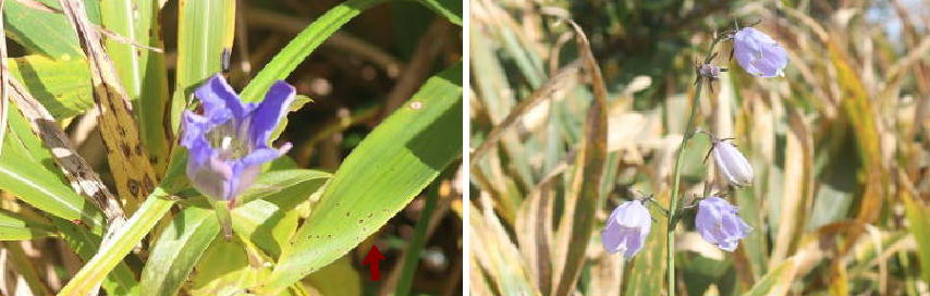 下山道では終盤のリンドウ、ツリガネニンジンが見られた |